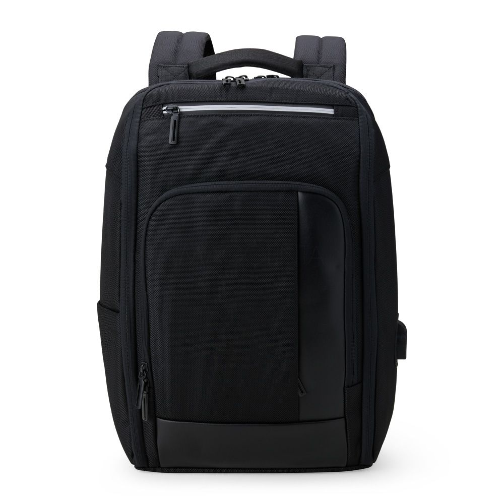Mochilas Mochila confeccionada em Nylon 22 litros com detalhes em couro sintético. Contém 5 compartimentos, sendo um bolso com faixa refletiva, divisórias internas para acessórios, bolso para tablet e notebook 15.6, bolso antifurto nas costas, bolso externo na lateral com elástico, suporte externo USB, alça para encaixe em malas de viagem, alças da mochila possuem bolsos integrados para suporte de óculos e cartões. 42,0 cm x 28,0 cm x 20,0 cm 983 g