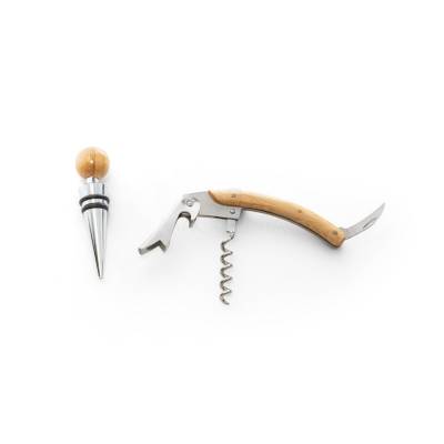Kit Vinho Conjunto de vinho com dois componentes em metal e bambu: um saca rolhas e um salva-gotas. Fornecido em caixa presente de papel kraft reciclado. A cor e o resultado da impressão nos materiais naturais pode variar entre produtos. 9,9 cm x 15,9 cm x 2,9 cm 165 g