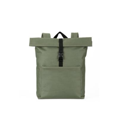 Mochila "Roll-top" para notebook em 600D e forro em 210D. Possui um compartimento principal espaçoso para notebook até 17.3", com fecho de enrolar no topo. Bolso frontal com zíper. Capacidade até 21 L.