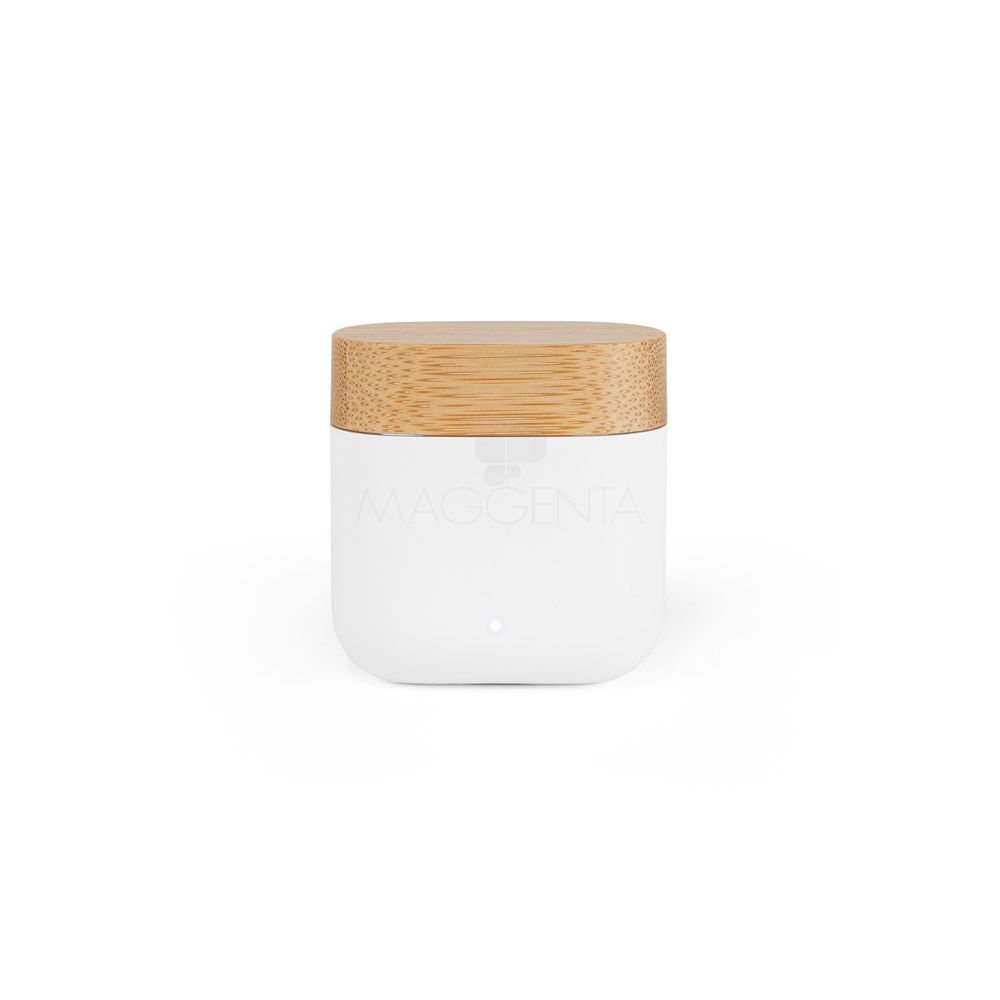 Tecnologia Fones de ouvido wireless em ABS 100% reciclado e caixa com tampa em bambu, com transmissão BT v5.3. A caixa de carregamento tem uma bateria de 300 mAh que permite carregar os fones, aproximadamente, 3 vezes com uma única carga, oferecendo uma autonomia, aproximada, de 5h. Os fones de ouvido permitem atender chamadas, controlar o volume e a playlist do dispositivo móvel. Incluso um cabo de carregamento USB-C em TPE 100% reciclado. 2,6 cm x 4,8 cm x 4,7 cm 49 g