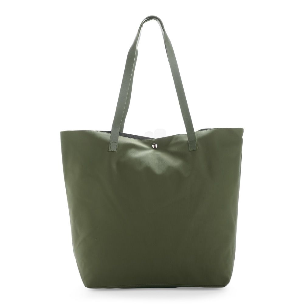 Sacolas Sacola confeccionada em couro sintético à base de PVC com par de alças de costura externa e botões magnéticos metálicos para fechamento. Possui revestimento interno em poliéster e bolso compacto com fechamento em zíper. 44,0 cm x 34,0 cm x 14,0 cm 259 g
