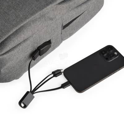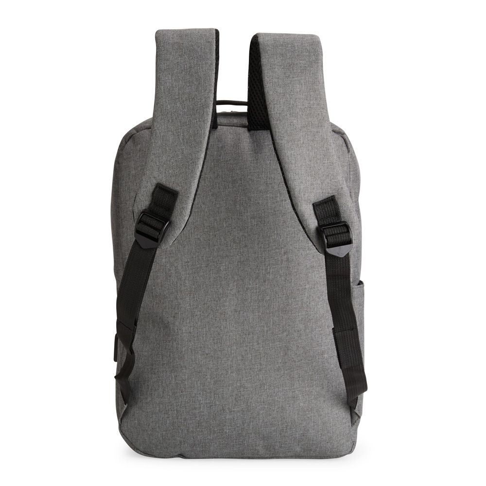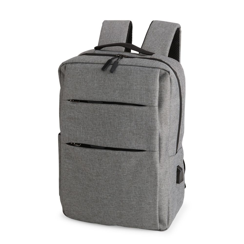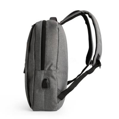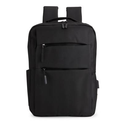 Mochilas Mochila confeccionada em nylon Oxford impermeável, com fechamento em zíper, puxadores com detalhes em nylon e plástico e capacidade de até 14 litros. Possui compartimento interno principal com bolsos de tamanhos variados e divisória para notebooks de ate 15,6 polegadas. Possui três compartimentos externos, um deles com abertura lateral. Dispõe também de bolso lateral, porta USB, alça de mão em poliéster 210D e alças para as costas em tecido respirável. 28,5 cm x 41,0 cm x 11,5 cm 638 g
