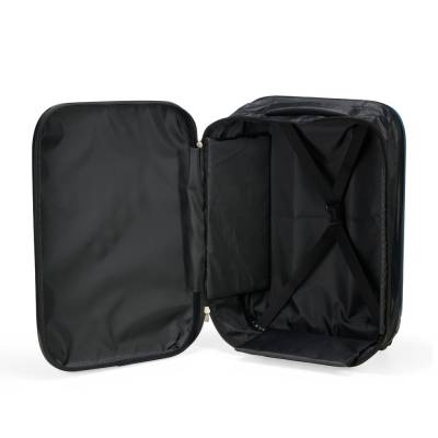 Mochilas Mala de viagem expansível em ABS com bordas em poliéster que, ao ser expandida, comporta a capacidade máxima de 40 litros. Conta com forro interno em poliéster 210D, cinta compressora para roupas e placas rígidas em PVC que mantêm a armação da mala quando desdobrada. Dispõe ainda de duas rodinhas e alça retrátil em alumínio com puxador em plástico. Acompanha uma faixa em poliéster com seção elástica para envolver a mala dobrada. 37,5 cm x 53,0 cm x 20,5 cm 2792 g