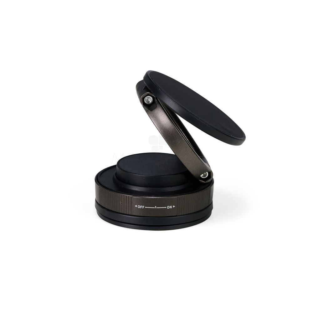 Tecnologia Suporte magnético em plástico ABS com articulação em diferentes ângulos e rotação de 360 graus no próprio eixo. Possui superfície magnética para fixação de aparelhos na vertical ou horizontal, compatível com dispositivos magnéticos ou com o anel adaptador incluso. Conta com mecanismo giratório para pressão da ventosa em superfícies lisas. Acompanha anel magnético adesivo, placa plástica com adesivo, kit de lenços e chave Allen. 6,0 cm x 3,1 cm 76 g