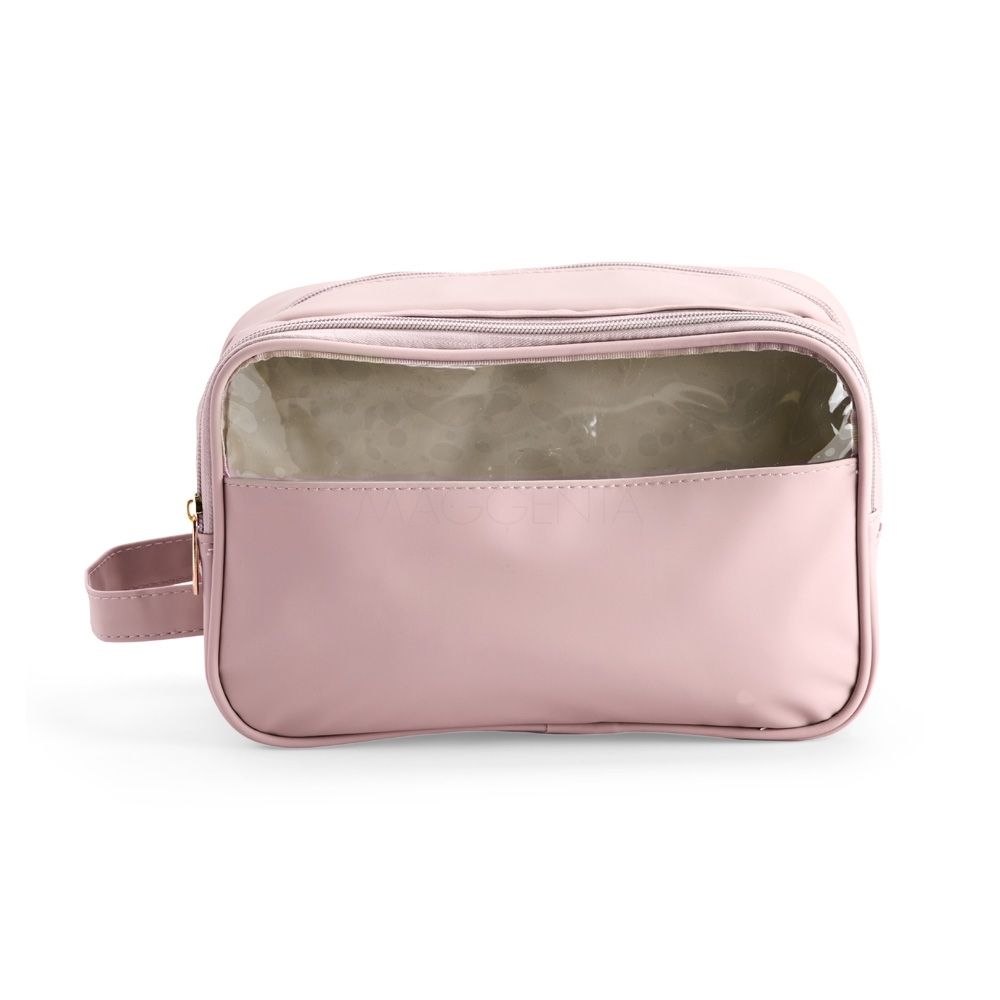 Necessaire Nécessaire confeccionada em filme sintético de poliuretano impermeável. Possui dois bolsos no compartimento interno principal, sendo um com fechamento em zíper e outro em tela de nylon. Dispõe ainda de compartimento frontal com viseira e revestimento interno em PVC, ideal para guardar itens molhados. 25,0 cm x 16,0 cm x 10,0 cm 229 g