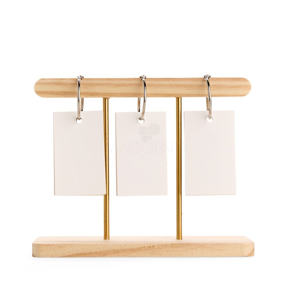 Calendário de Mesa Calendário permanente de mesa com estrutura em madeira e metal. Conta com fichas em papel cartão que exibem os dias e os meses, além de argolas metálicas para organizar as fichas e deixar a montagem intuitiva. 7,6 cm x 15,5 cm x 19,3 cm 176 g