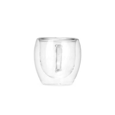 Caneca de vidro borossilicato com capacidade máxima de 250ml. Conta com estrutura de parede dupla que impede o contato da temperatura do líquido na parede externa da caneca.