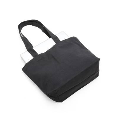 Sacola confeccionada em lona resistente a respingos dágua. Possui duas alças fixadas por costura interna.