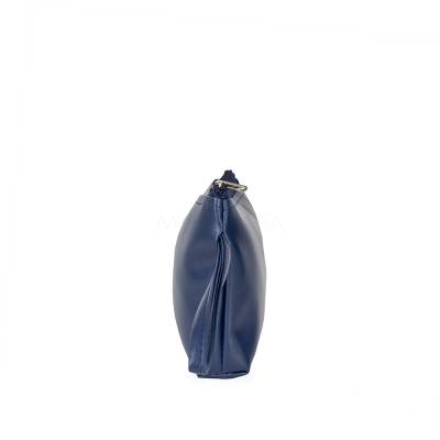 Nécessaire em couro sintético resistente à água, fechamento em zíper e alça lateral para transporte.