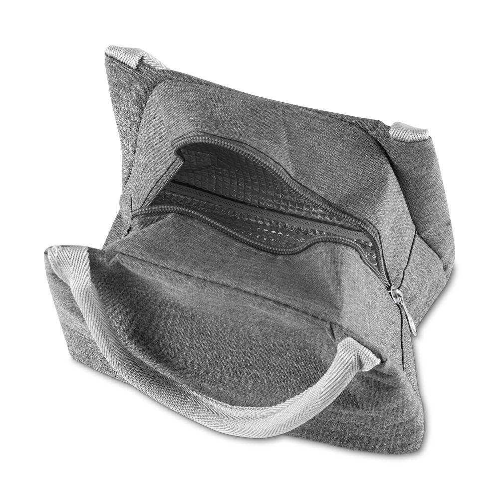 Bolsas Térmicas Bolsa térmica com alça de mão, confeccionada em poliéster 300D na parte externa e alumínio com manta térmica no interior. Modelo costurado, puxador de zíper em formato de colher, sem solda e capacidade para 5,6 litros. 22,5 cm x 18,0 cm x 14,0 cm 127 g