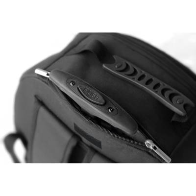 Mochila trolley para notebook em 1680D e 300D com 2 rodas. Possui um compartimento principal almofadado para notebook ate 15'6'', compartimento forrado e diversos bolsos. Bolso frontal com ziper e bolsos laterais em tela mesh. O trolley tem protetor de rodas, alcas almofadadas e pega extensivel em metal com mola (altura da pega estendida ate 530 mm). Placa metalica removivel com ima para facil gravacao. Capacidade ate 24 L e peso de 1.65 kg. 350 x 460 x 155 mm | Placa: 50 x 20 mm