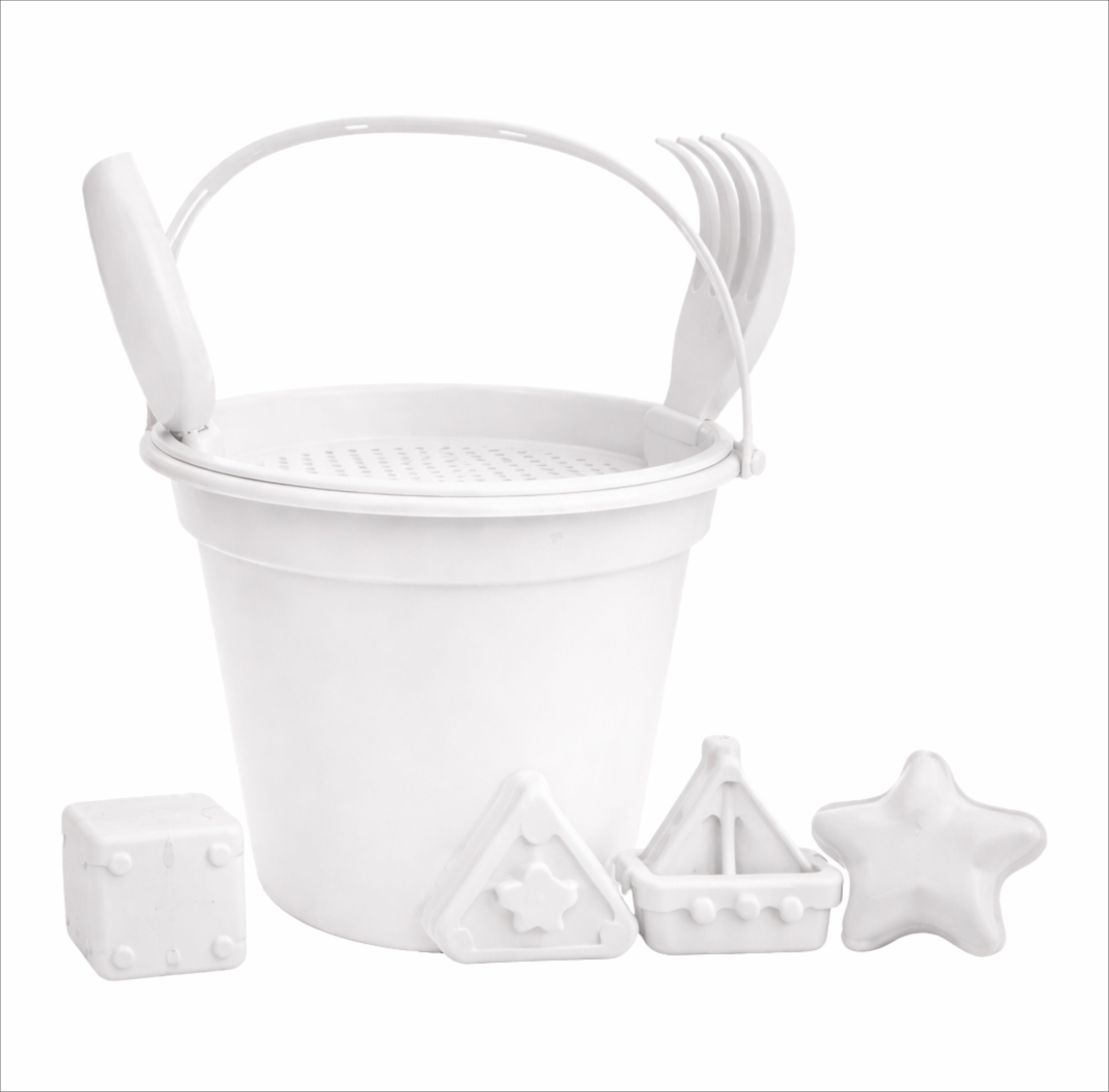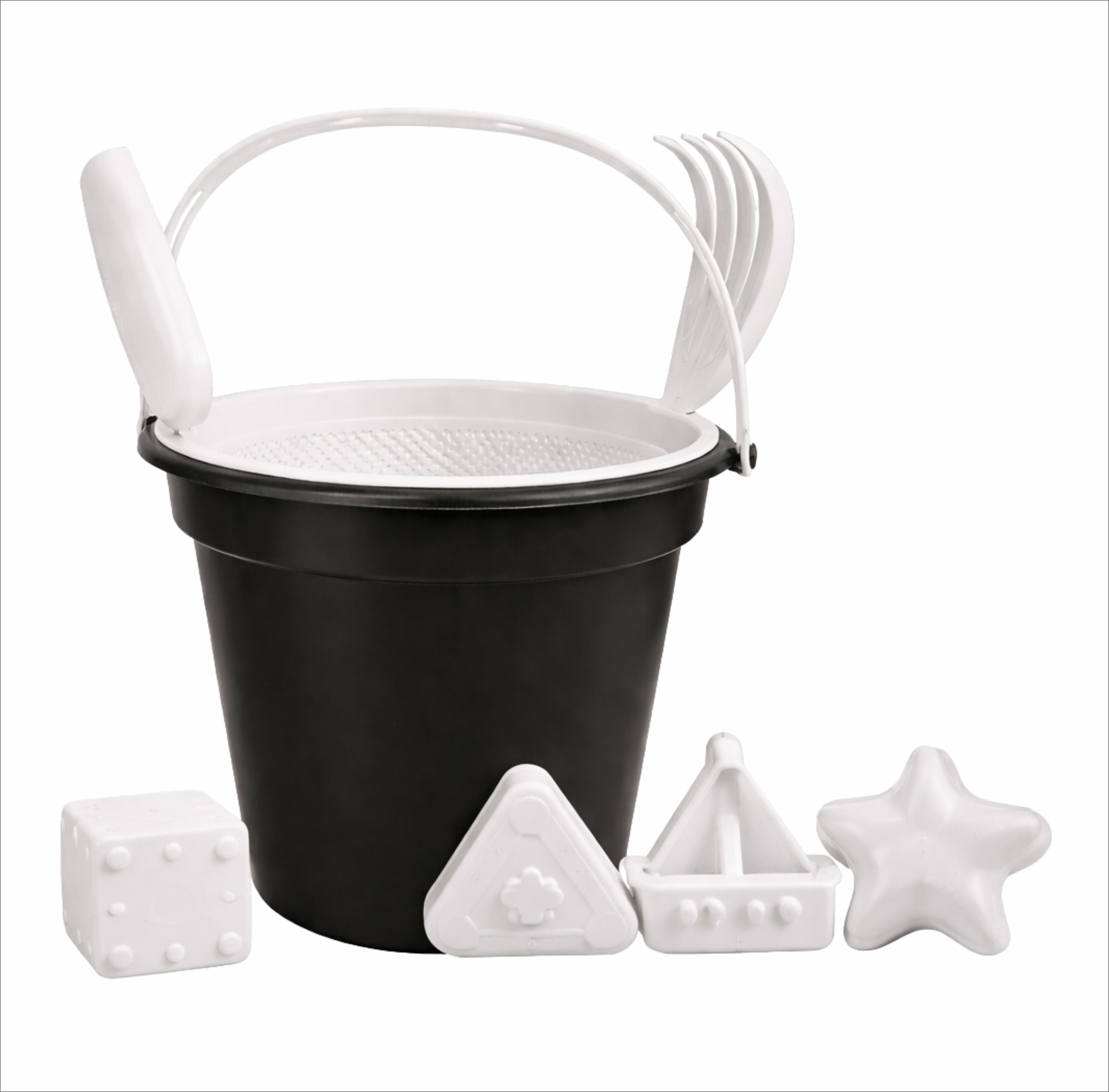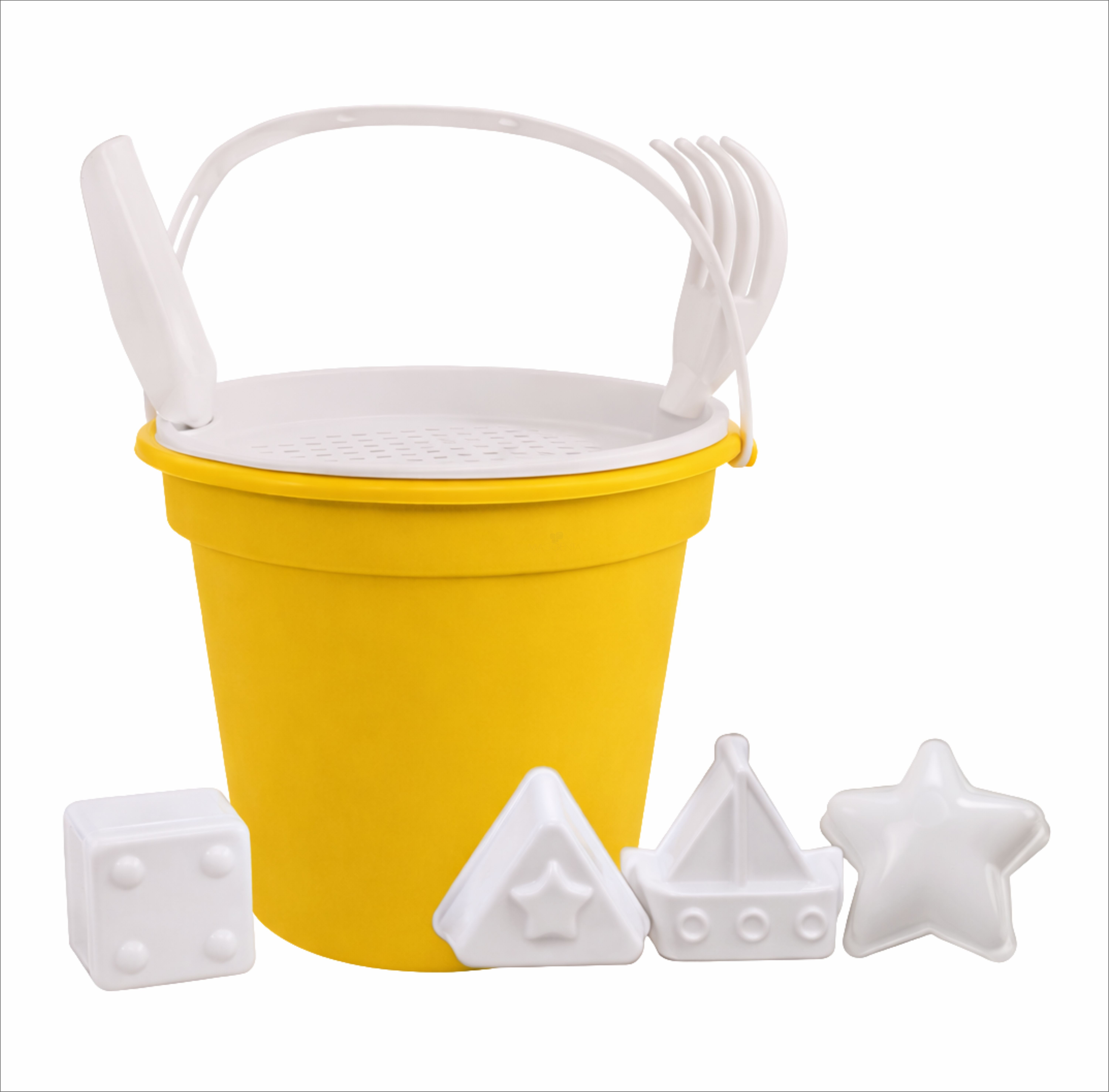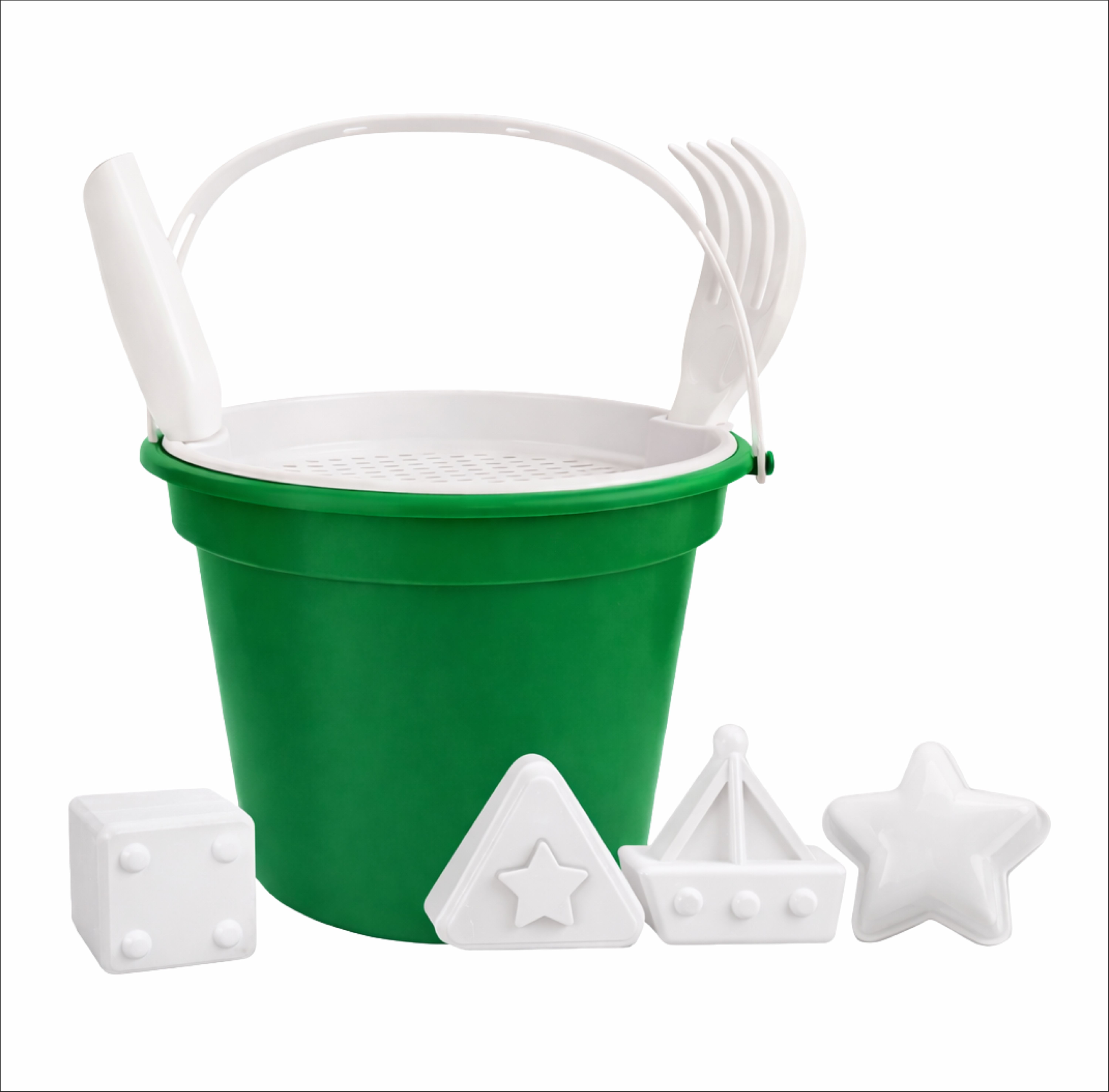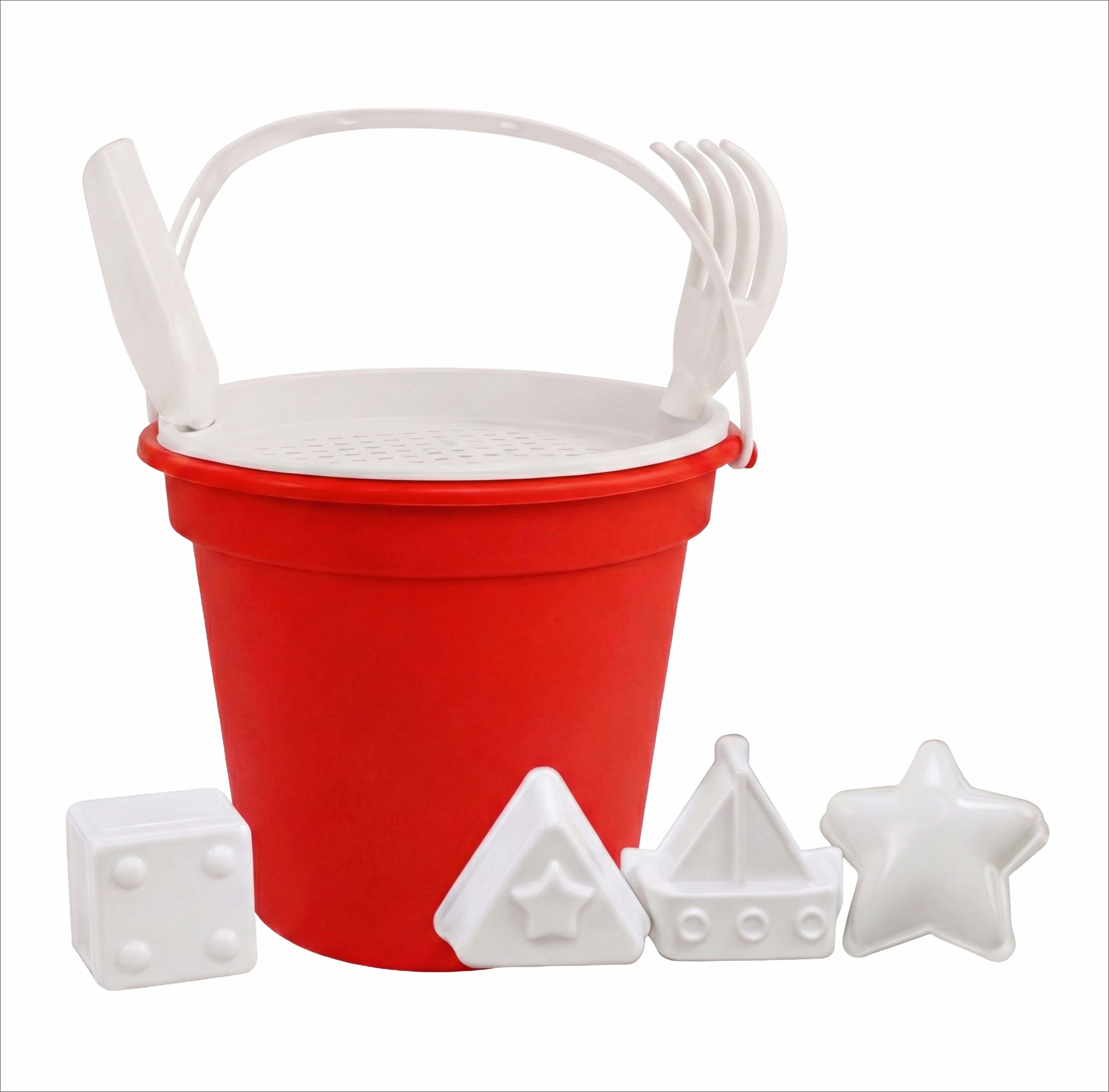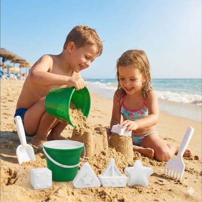 Baldinho de Praia com Peneira, Pá e Rastelo e 2 Formas