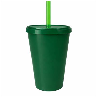 Copo Plástico com Tampa e Canudo 350ml