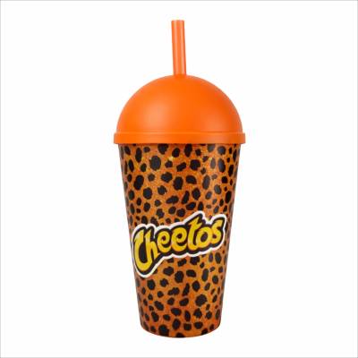 Copo Plástico In Mold Label com Tampa Bola e Canudo 450ml