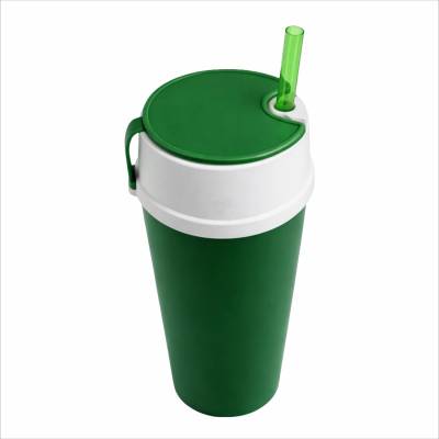 Copo 450ml personalizado com tampa porta snacks, desenvolvido em polipropileno durável, ideal para eventos corporativos, campanhas promocionais e ações sazonais. Seu design inovador com espaço para snacks agrega valor e diferenciação ao brinde, proporcionando praticidade no consumo de bebidas e alimentos. Permite personalização em silk screen ou transfer, sendo uma opção moderna e funcional para fortalecer a presença da sua marca.
